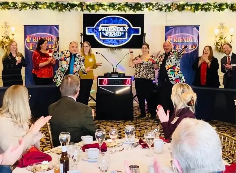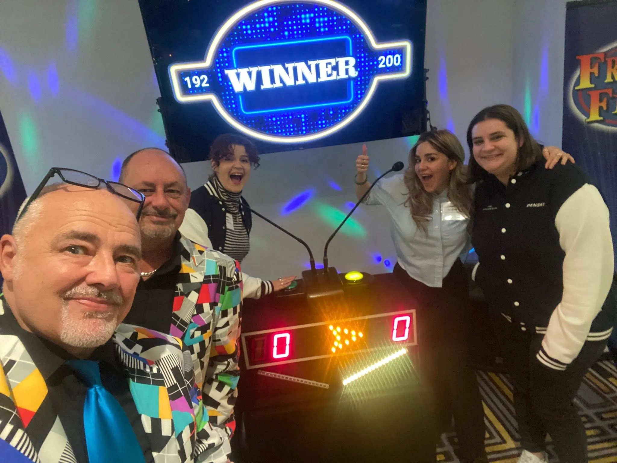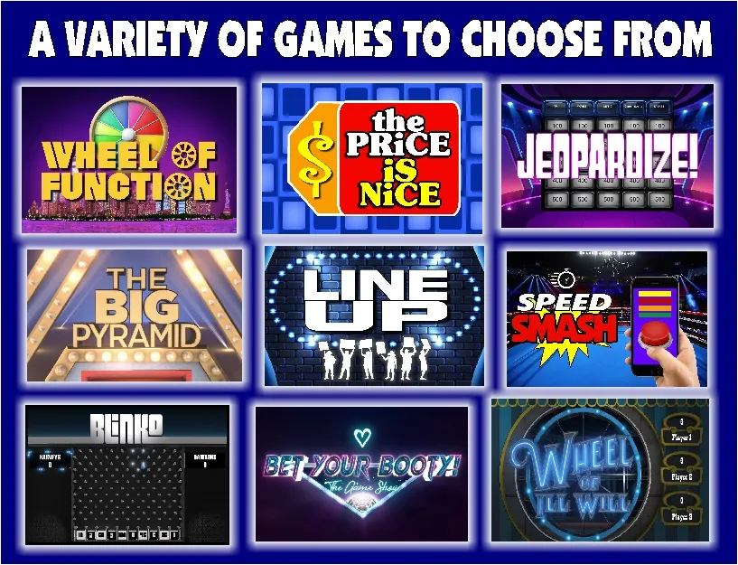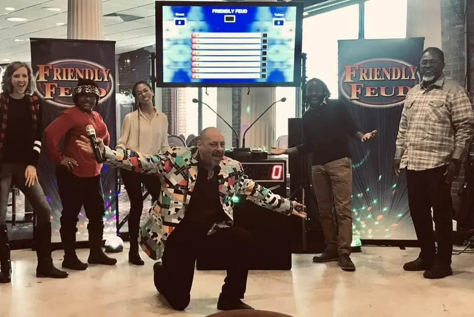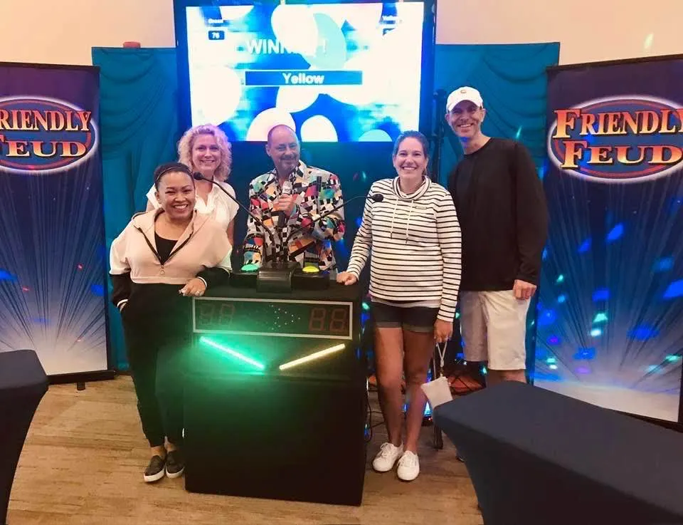 Answer: You’ve got multiple options depending on your crowd and goals—like the popular Friendly Feud, Jeopardize, The Price Is Nice, Wheel of Function, The Big Pyramid, and more. We help you choose the best one for your group’s vibe and event style. Also we could include several different games during the event.