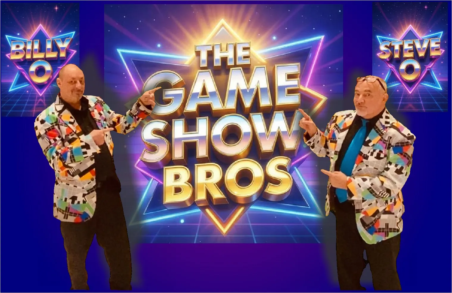 IMAGINE your co-workers, friends, family participating in the FUN! We bring it all. The Game Show Podium, HAND SLAP BUZZERS, music, lights, pro sound system ... and THE GAME SHOW BROS!